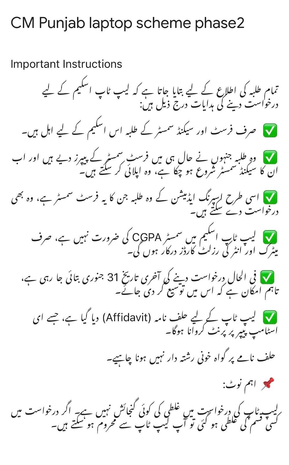 1st or 2nd semester of BS Nursing in Public Sector Nursing Colleges (1st professional – academic session 2025 to onward) (Click here to see the list of nursing colleges included in CM Laptop Scheme).