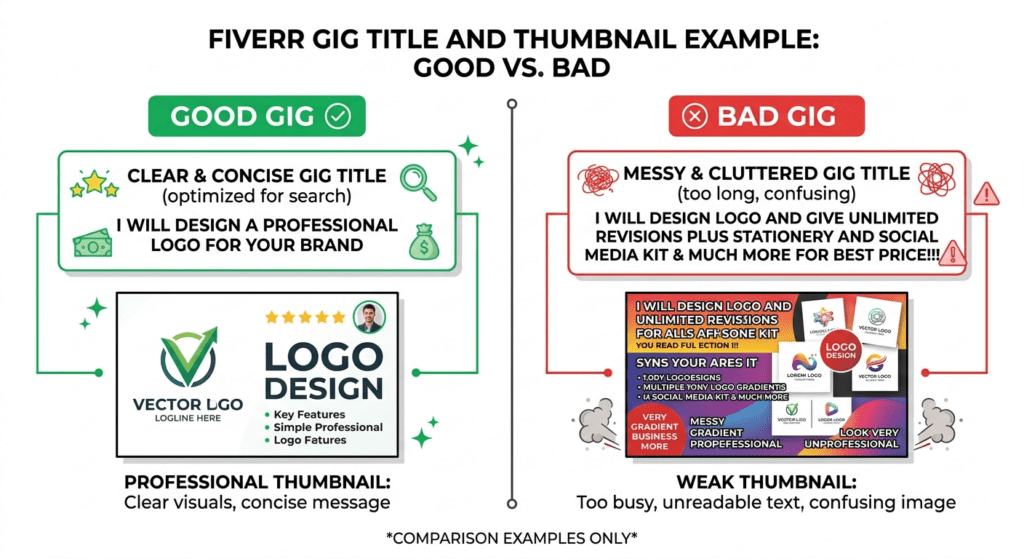 A lot of beginners ignore thumbnails, but they directly affect clicks. If buyers do not click your gig, they will never place an order.